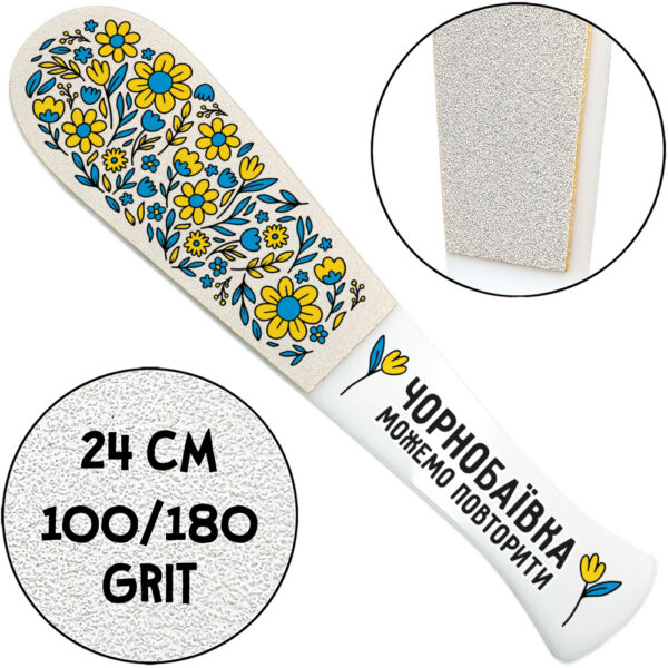 “Chornobayvka – we can repeat”, Pedicure Grater With Handle, 100/180 grit, White