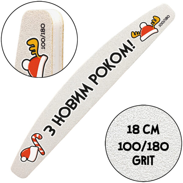 “С Новым Годом”, Пилочка для маникюра, 100/180 грит, Полумесяц 18 см