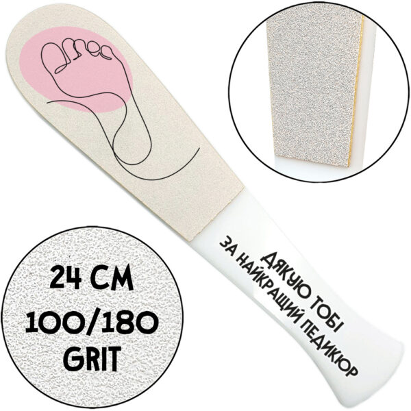 “Дякую Тобі за найкращий педикюр”, Педикюрна Терка З Ручкою, 100/180 гріт, Біла