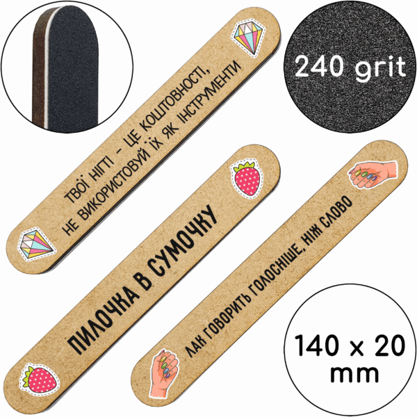 • С одной стороны надпись, с другой – абразив для натуральных ногтей.